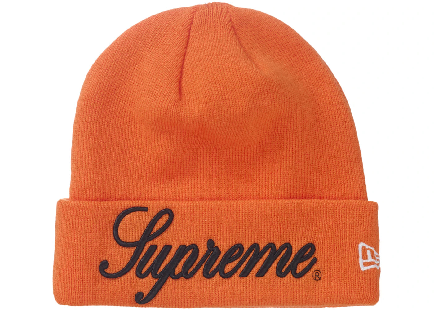 The Supreme New Era Script Beanie Orange is now available at Side Kicks!