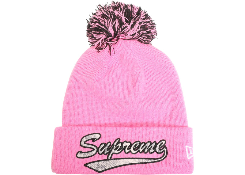 The Supreme New Era Snake Script Beanie Pink is now available at Side Kicks!