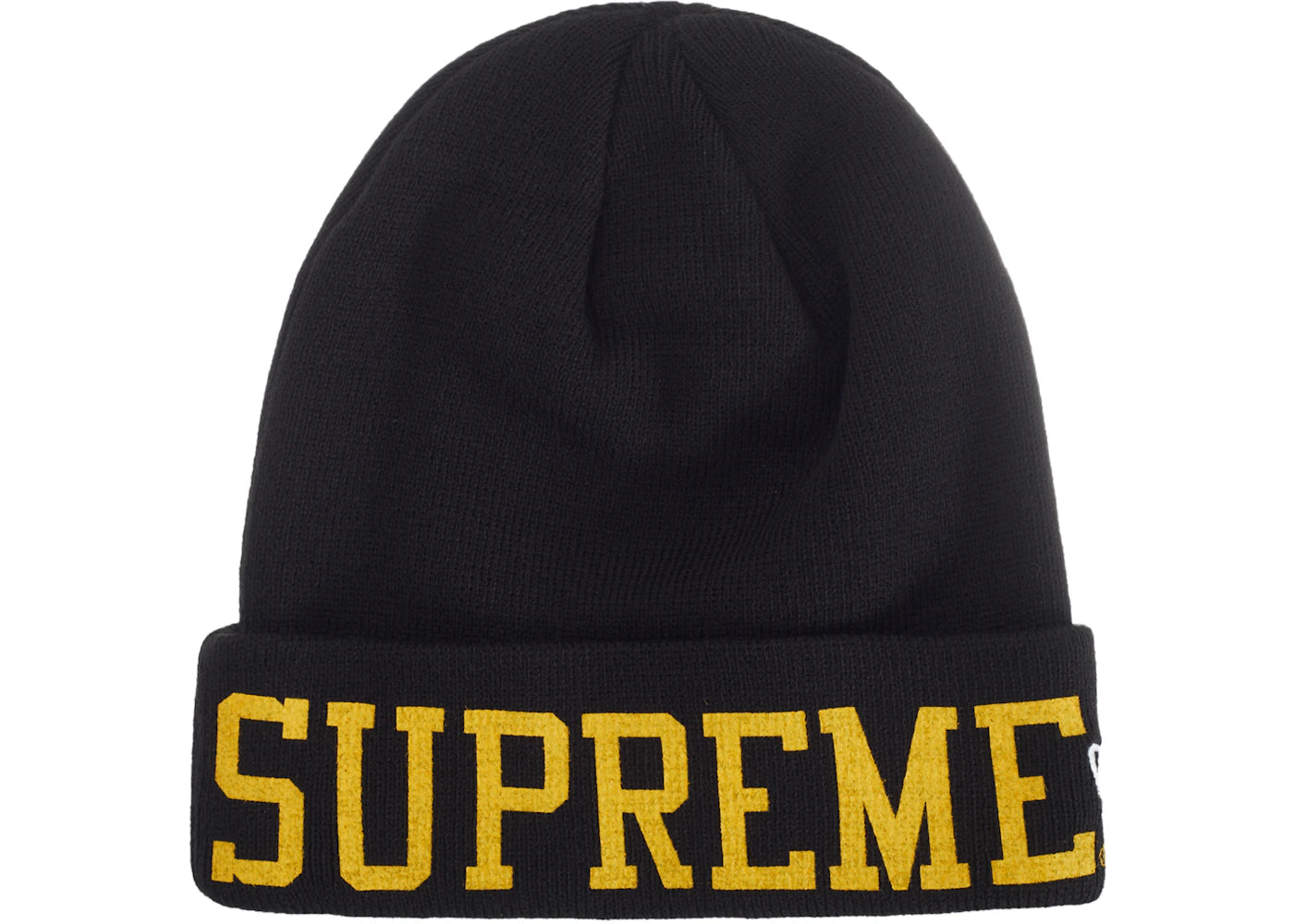 The Supreme New Era Varsity Beanie Black is now available at Side Kicks!