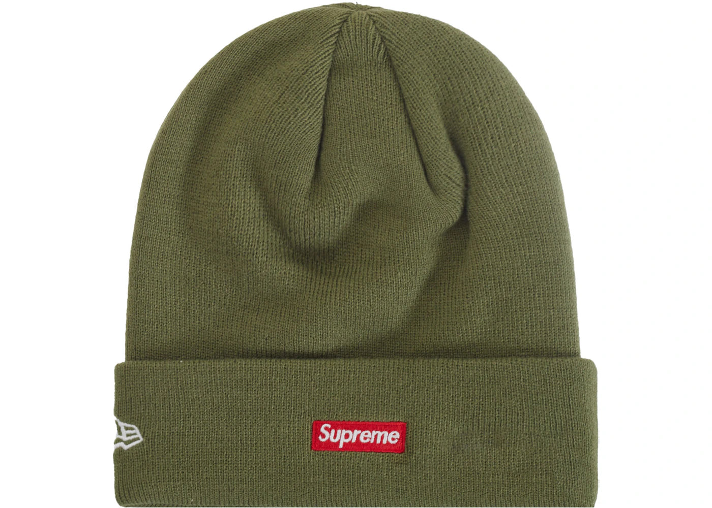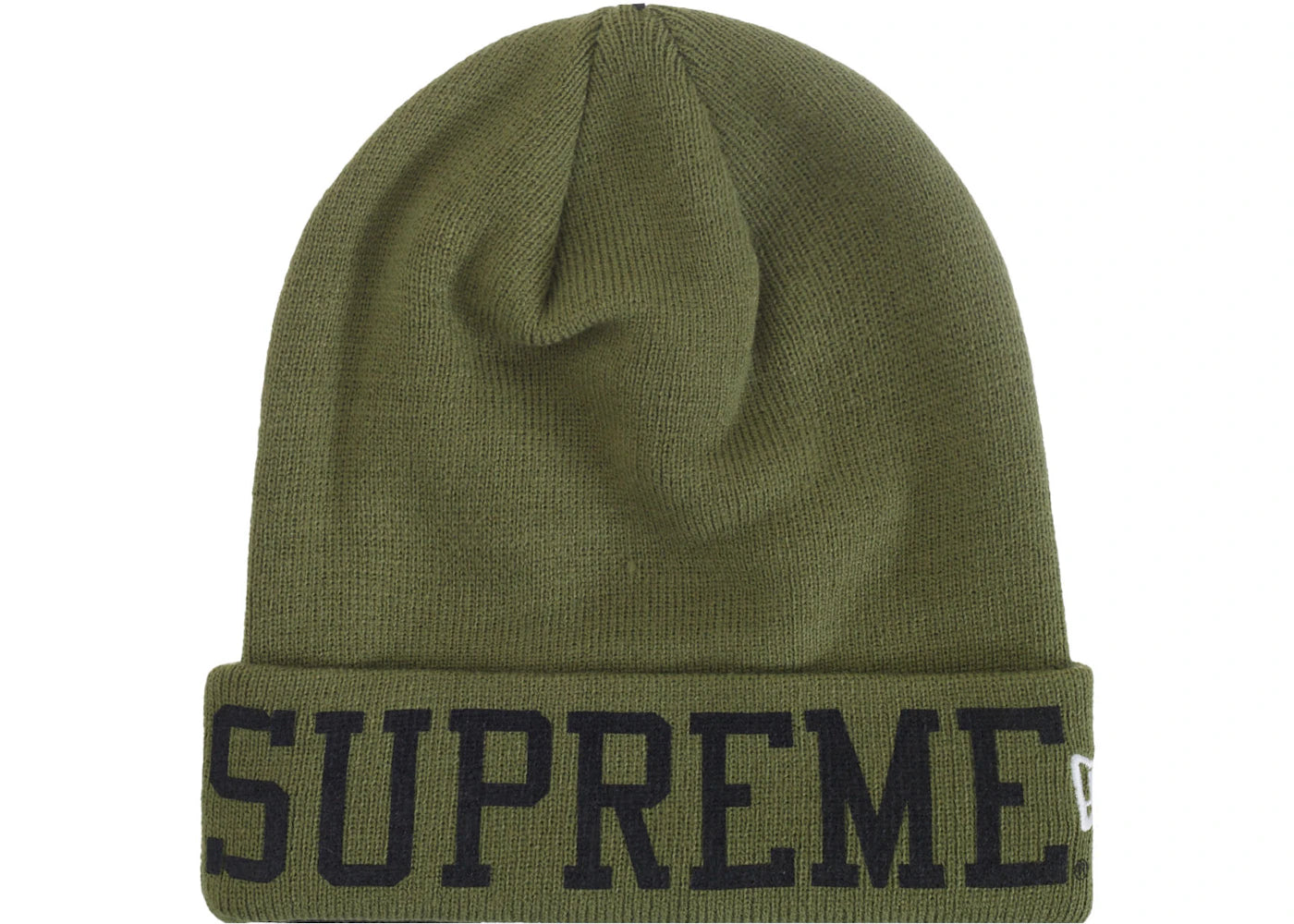 The Supreme New Era Varsity Beanie Olive is now available at Side Kicks!
