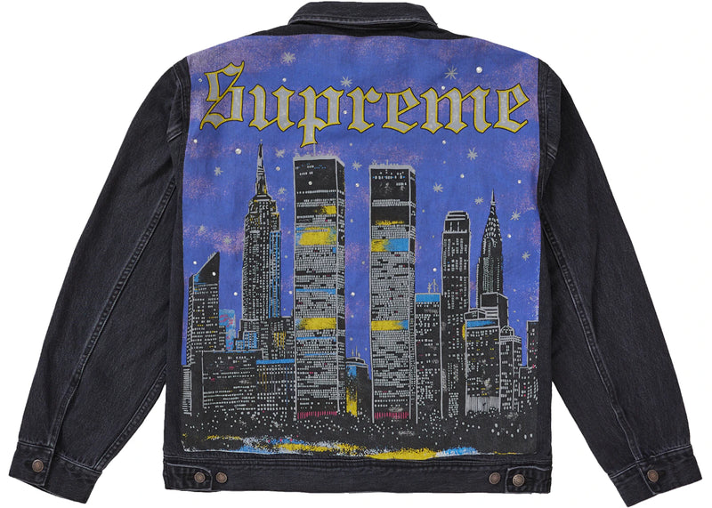 The Supreme New York Painted Trucker Jacket Black is now available at Side Kicks!