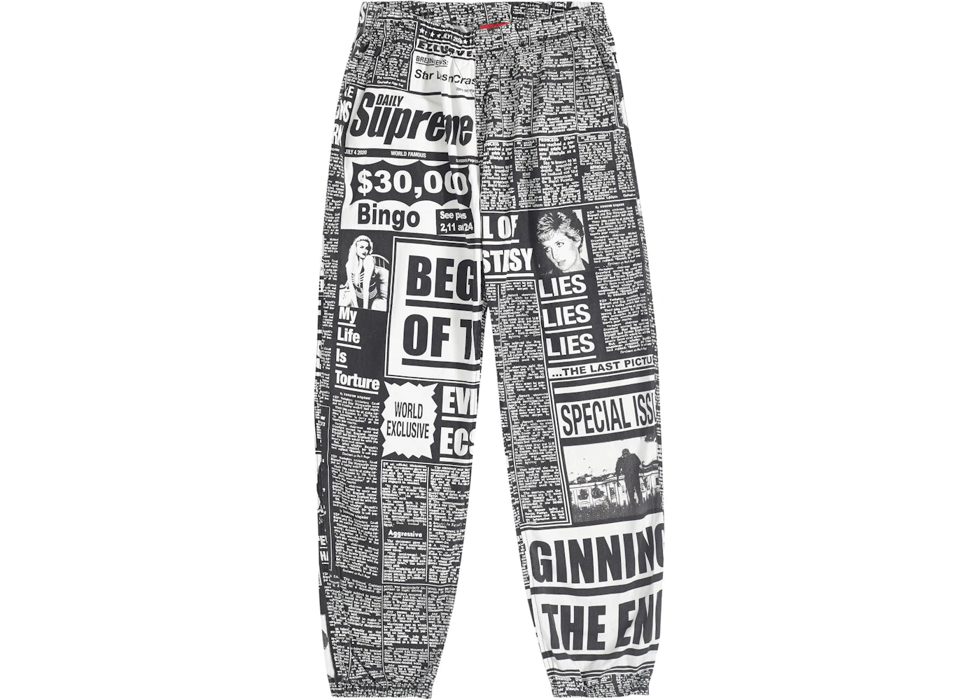 The Supreme Newsprint Skate Pant Black is now available at Side Kicks!