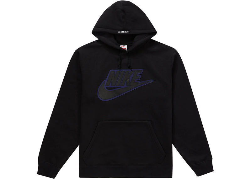 The Supreme Nike Leather Applique Hooded Sweatshirt Black is now available at Side Kicks!