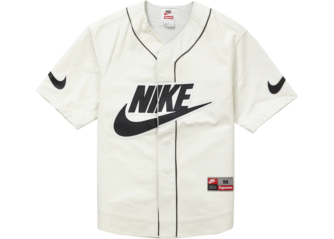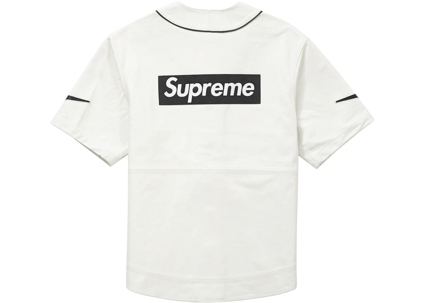 The Supreme Nike Leather Baseball Jersey White is now available at Side Kicks!