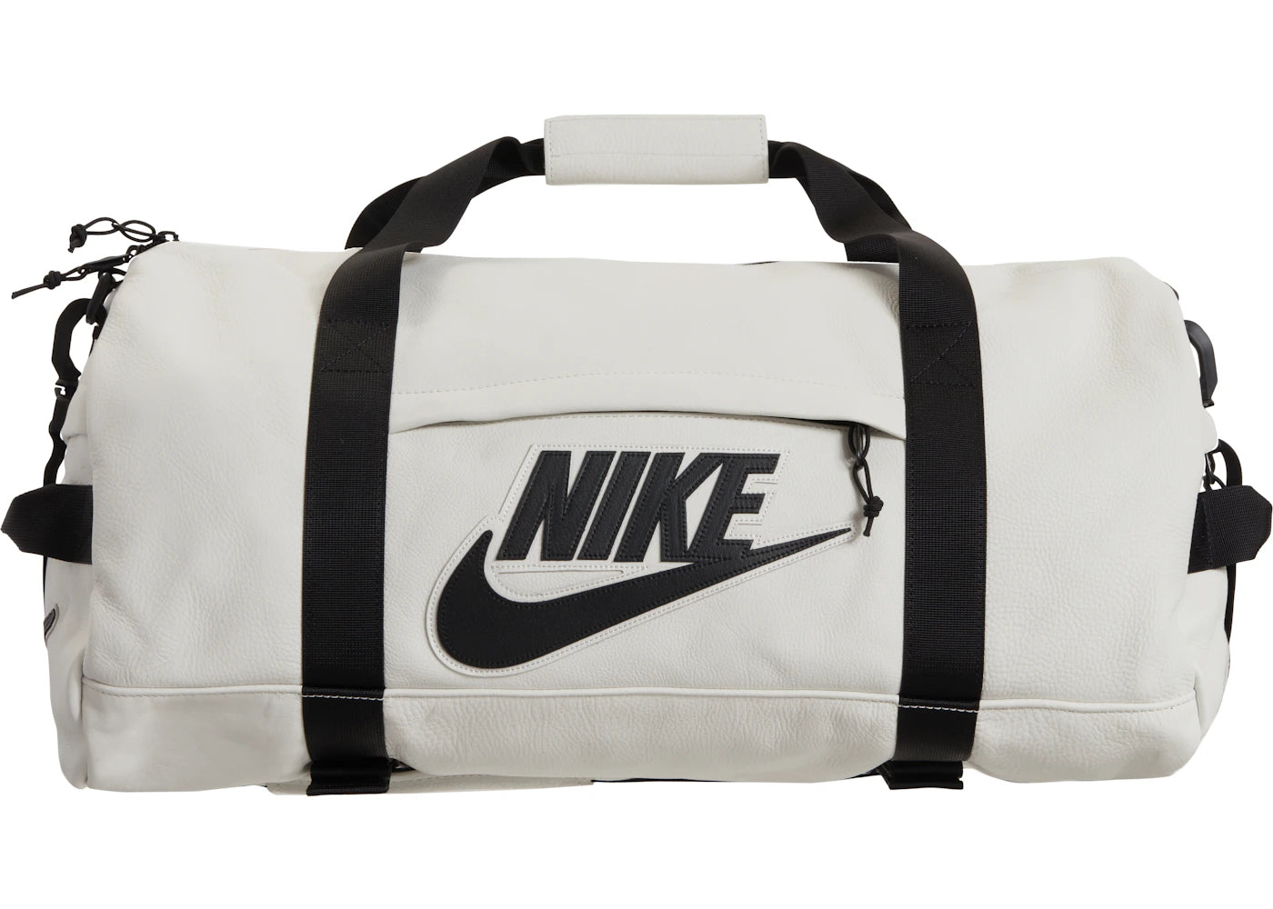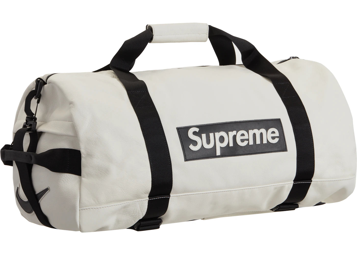 The Supreme Nike Leather Duffle Bag White is now available at Side Kicks!