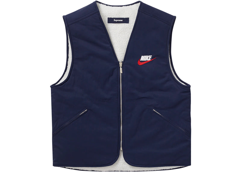 The Supreme Nike Reversible Nylon Sherpa Vest Navy is now available at Side Kicks!