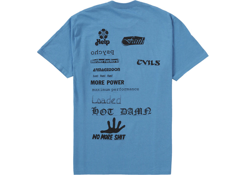 The Supreme No More Shit Tee Dusty Light Royal is now available at Side Kicks!