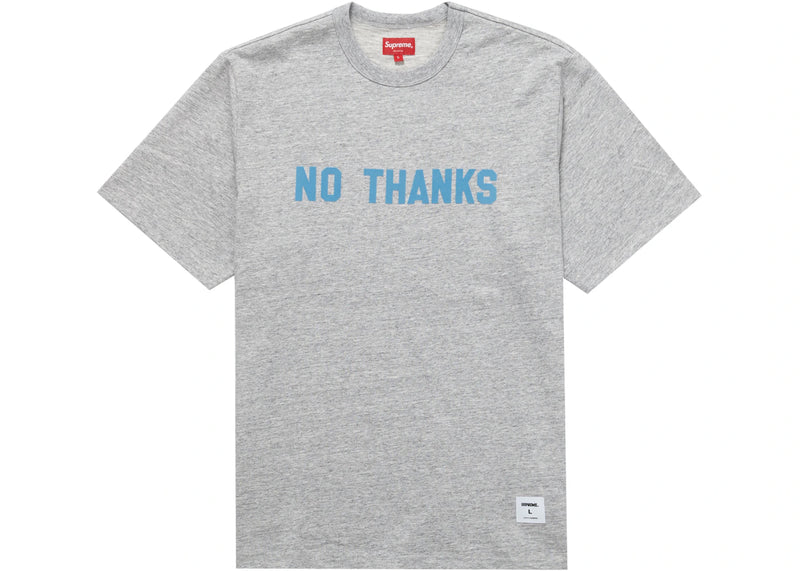 The Supreme No Thanks S/S Top Heather Grey is now available at Side Kicks!
