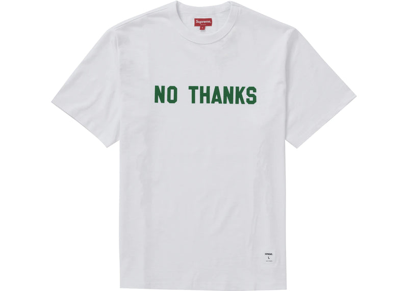 The Supreme No Thanks S/S Top White is now available at Side Kicks!