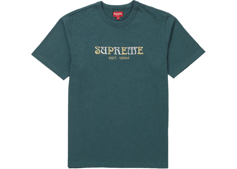 The Supreme Nouveau Logo Tee Dark Teal is now available at Side Kicks!