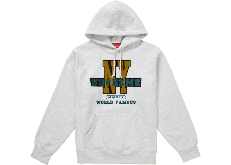 The Supreme NY Hooded Sweatshirt Ash Grey is now available at Side Kicks!