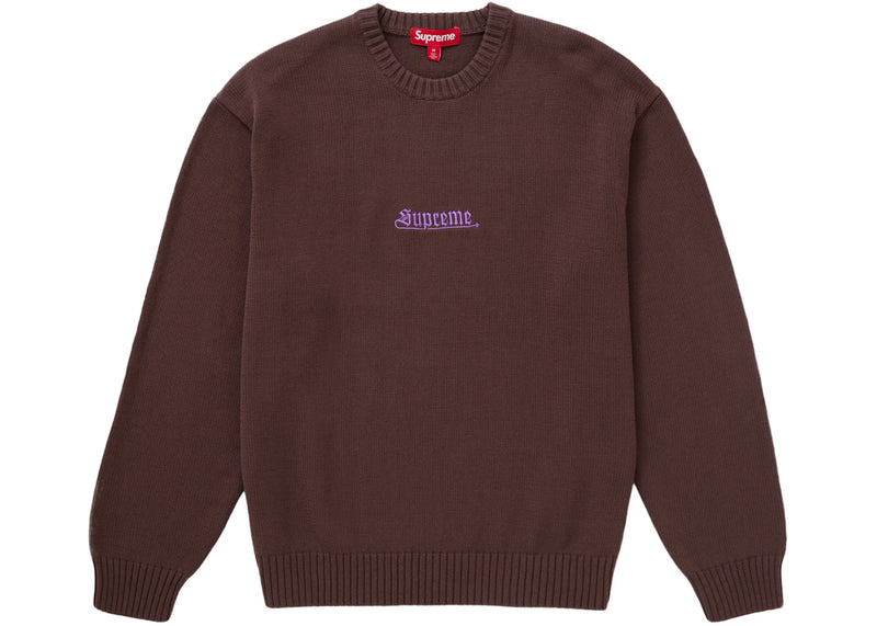 The Supreme Old English Sweater Brown is now available at Side Kicks!