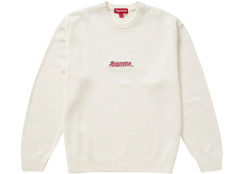 The Supreme Old English Sweater Ivory is now available at Side Kicks!