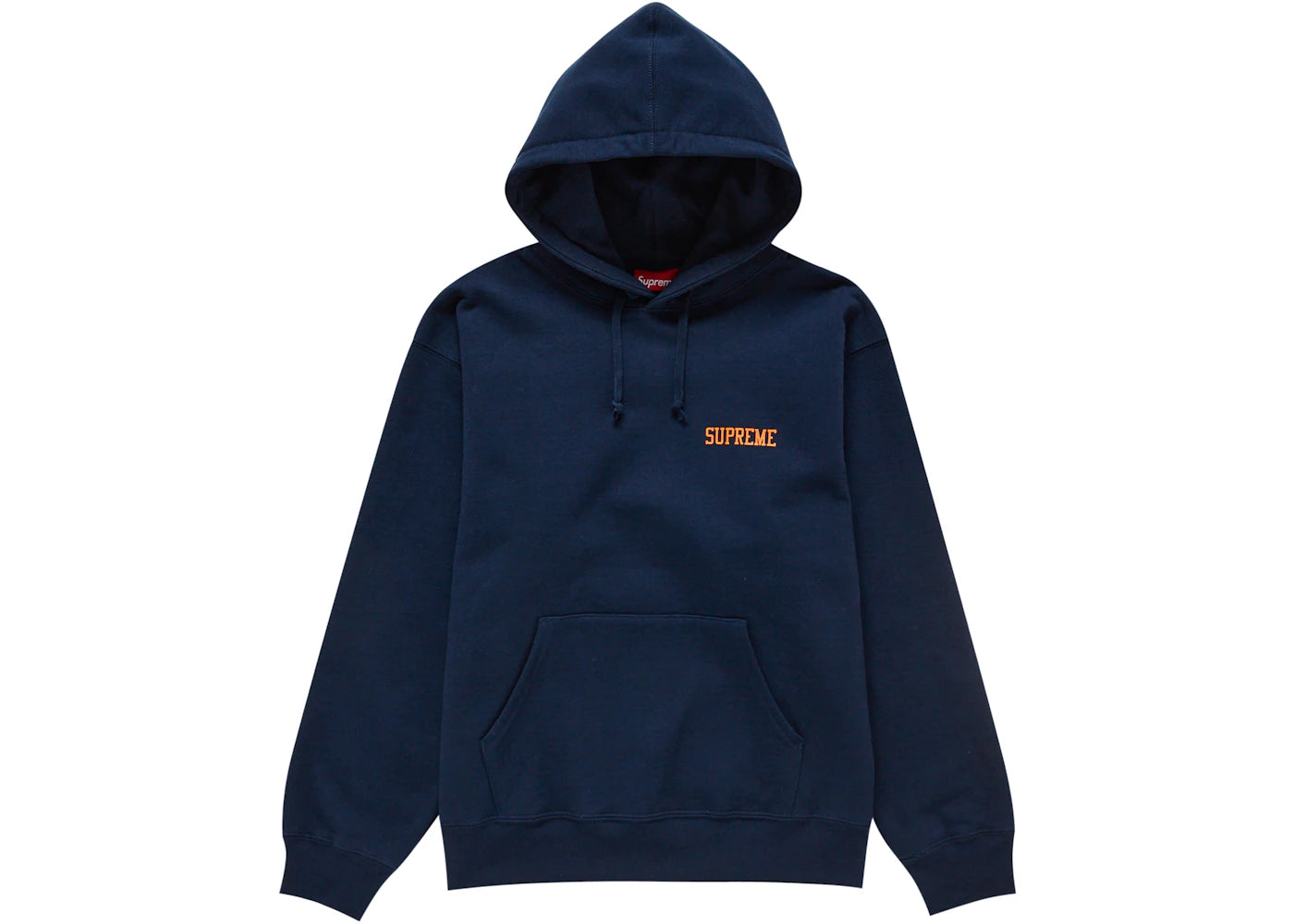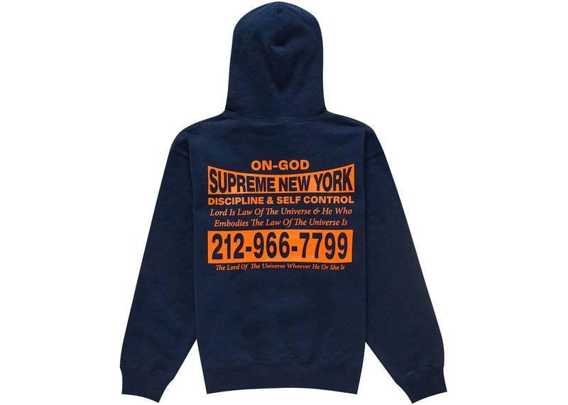 The Supreme On God Hooded Sweatshirt Navy is now available at Side Kicks!