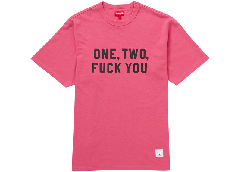 The Supreme One Two Fuck You S/S Top Pink is now available at Side Kicks!