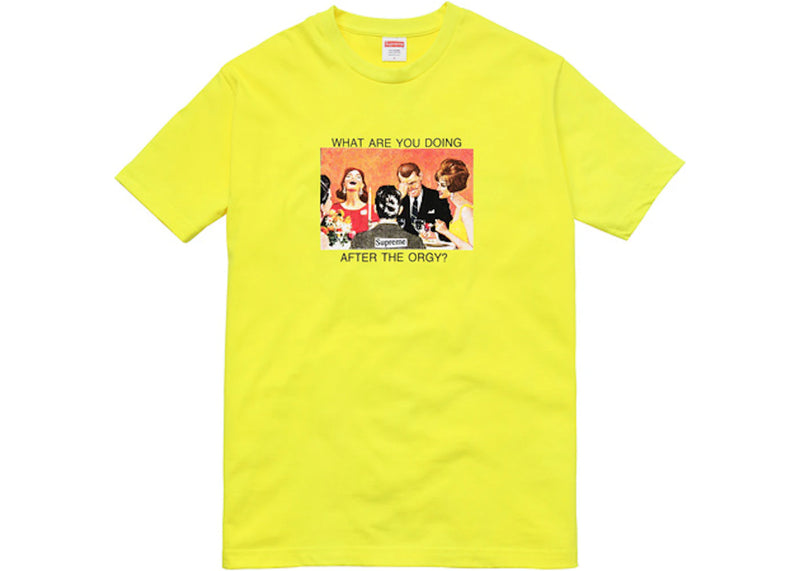 The Supreme Orgy Tee Bright Yellow is now available at Side Kicks!
