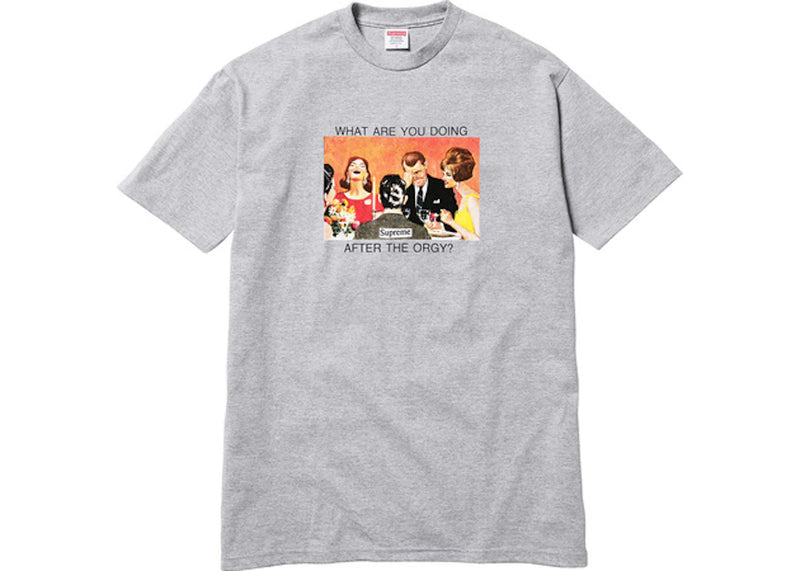 The Supreme Orgy Tee Heather Grey is now available at Side Kicks!