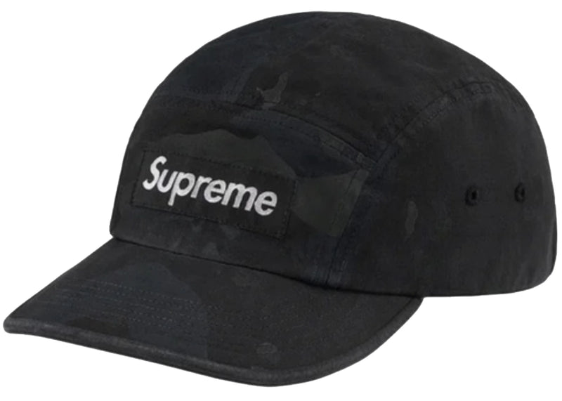 The Supreme Overdyed Camo Camp Cap Black is now available at Side Kicks!