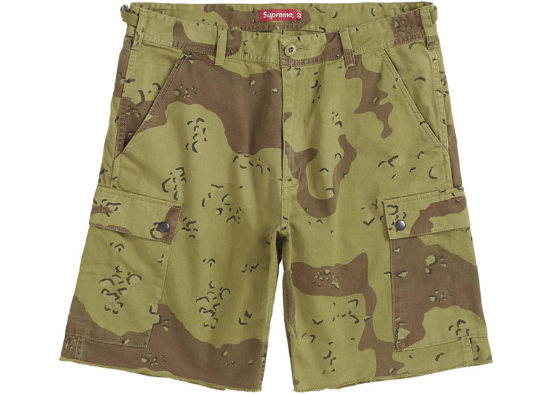 The Supreme Overdyed Camo Cargo Short Green is now available at Side Kicks!