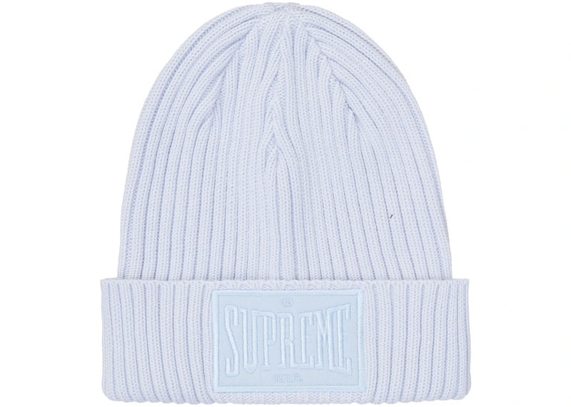 The Supreme Overdyed Patch Beanie Light Blue is now available at Side Kicks!