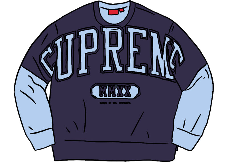 The Supreme Overprint Crewneck Ice Blue is now available at Side Kicks!