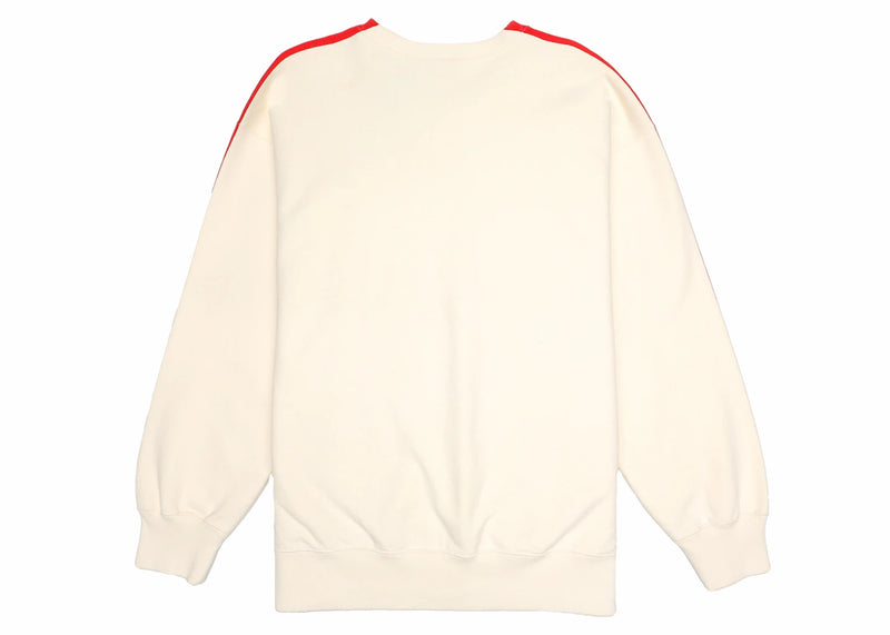 The Supreme Overprint Crewneck White is now available at Side Kicks!