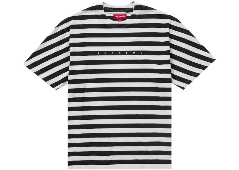 The Supreme Overprint Stripe S/S Top Black is now available at Side Kicks!