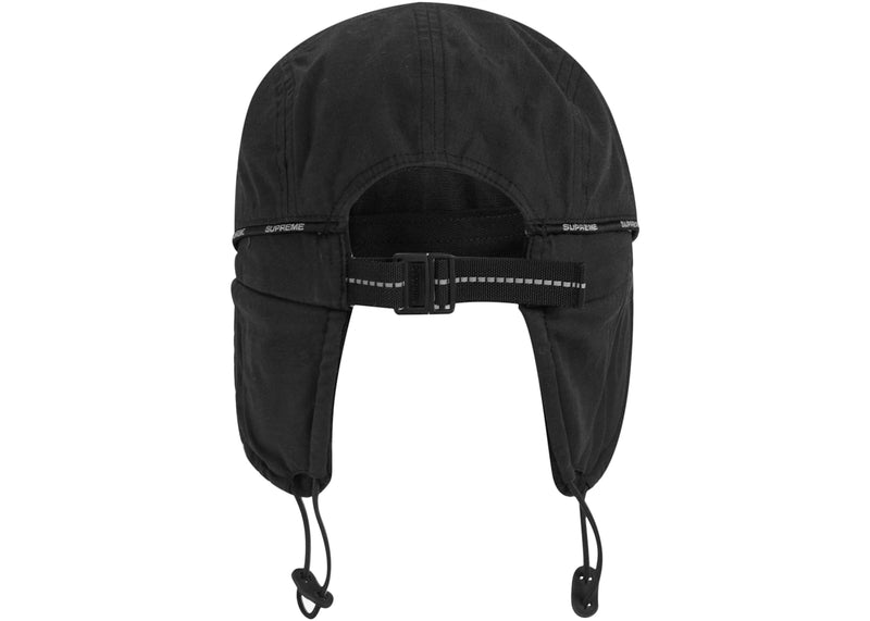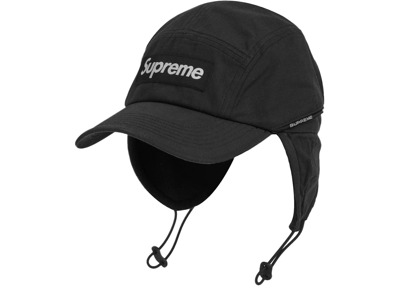 The Supreme Packable Earflap Camp Cap Black is now available at Side Kicks!