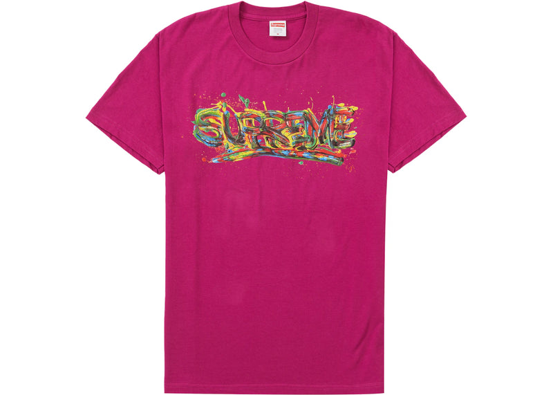 The Supreme Paint Logo Tee Magenta is now available at Side Kicks!