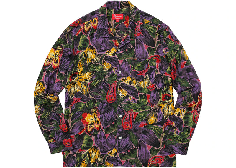 The Supreme Painted Floral Rayon Shirt Purple is now available at Side Kicks!