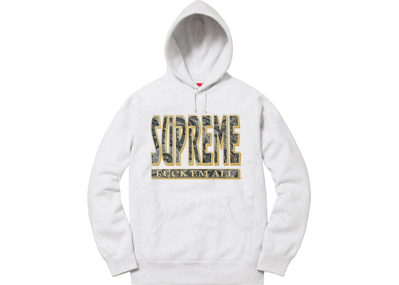 The Supreme Paisley Fuck Em All Hoodie Ash Grey is now available at Side Kicks!