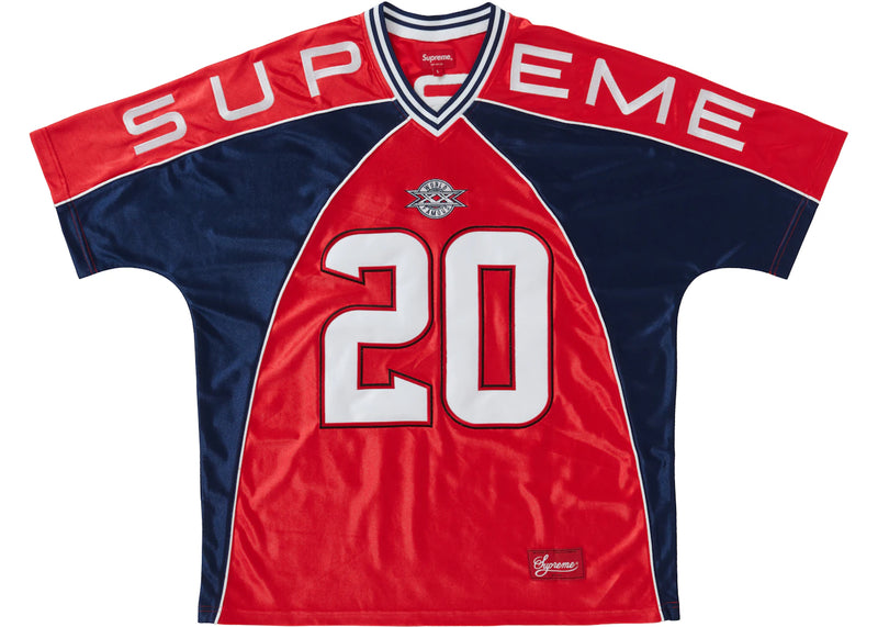 The Supreme Paneled Jersey Red is now available at Side Kicks!