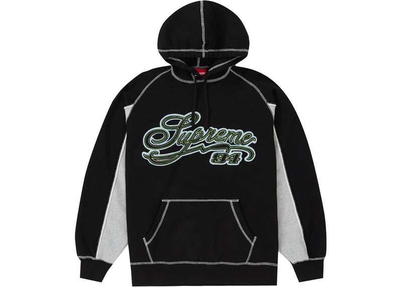 The Supreme Paneled Script Hooded Sweatshirt Black is now available at Side Kicks!