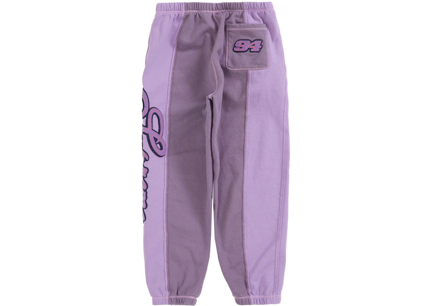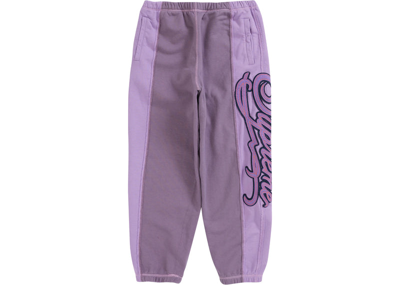 The Supreme Paneled Script Sweatpant Dusty Purple is now available at Side Kicks!