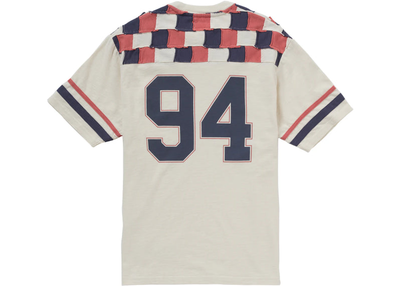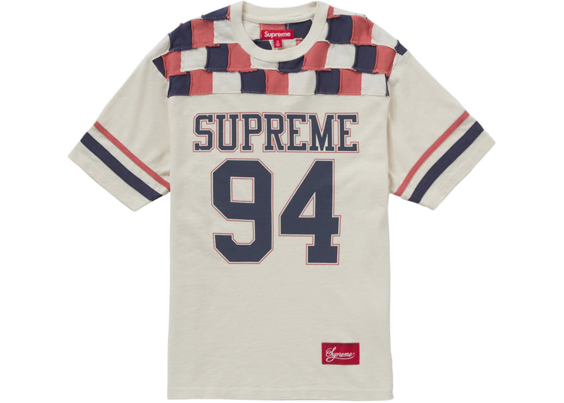 The Supreme Patchwork Yoke Football Top Stone is now available at Side Kicks!