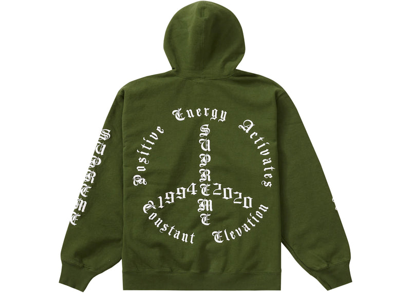 The Supreme Peace Hooded Sweatshirt Green is now available at Side Kicks!