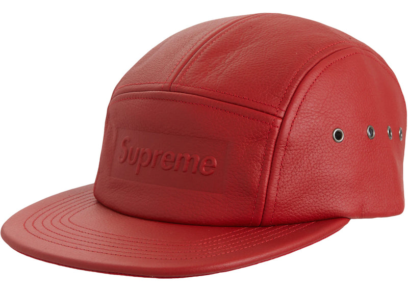 The Supreme Pebbled Leather Camp Cap Red is now available at Side Kicks!