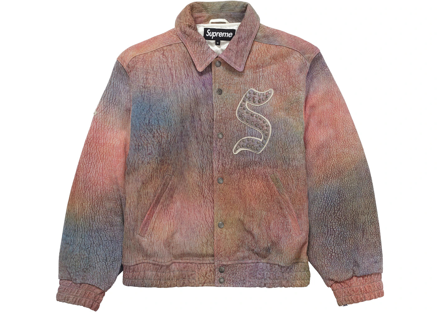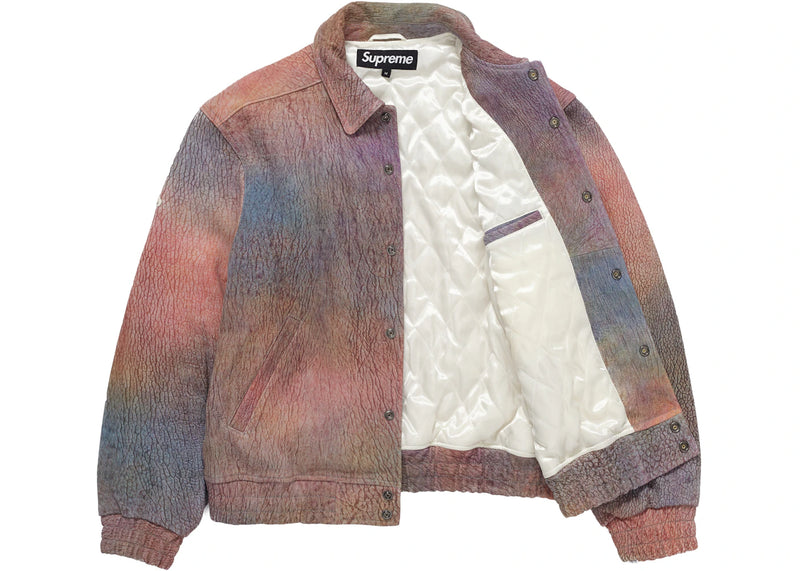 The Supreme Pebbled Leather Varsity Jacket Multicolor is now available at Side Kicks!