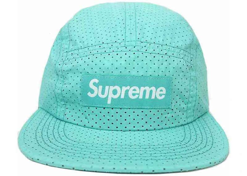 The Supreme Perforated Camp Cap Teal is now available at Side Kicks!