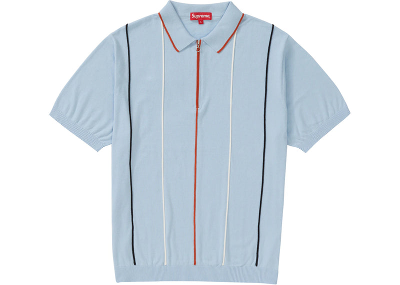 The Supreme Pinstripe Half Zip Polo Light Blue is now available at Side Kicks!