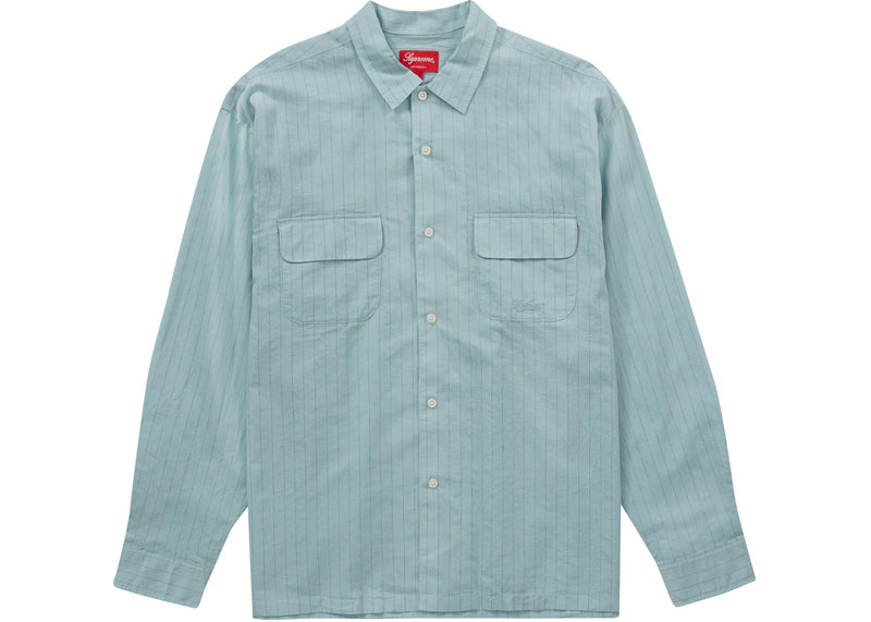 The Supreme Pinstripe Linen Shirt Light Blue is now available at Side Kicks!