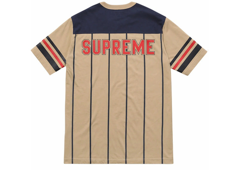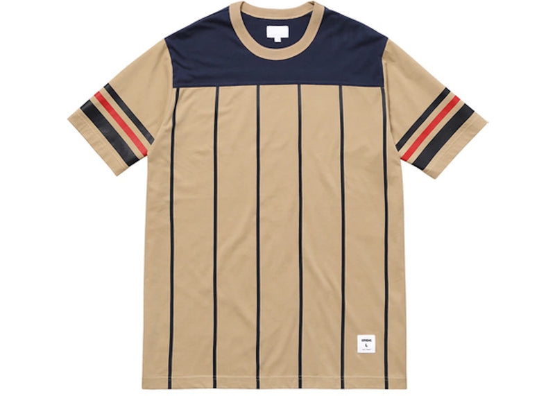 The Supreme Pinstripe SS Football Top Tan is now available at Side Kicks!
