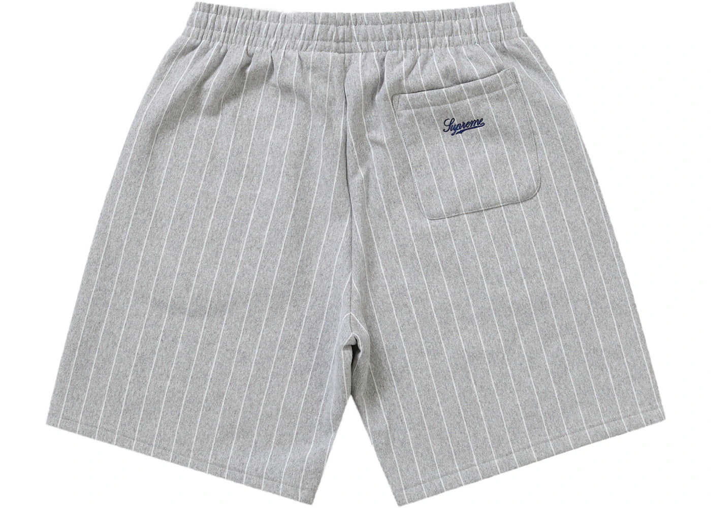 The Supreme Pinstripe Sweatshort Heather Grey is now available at Side Kicks!