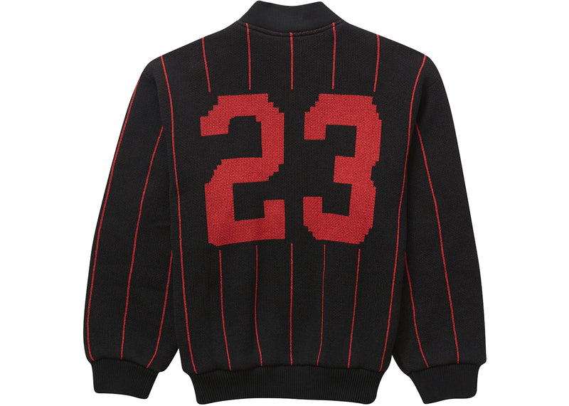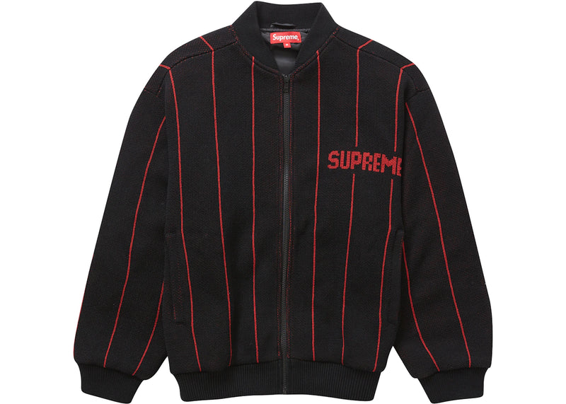 Supreme Pinstripe Varsity Zip Up Sweater Black