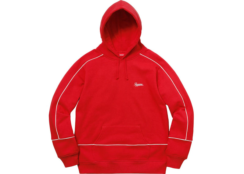 The Supreme Piping Hooded Sweatshirt Red is now available at Side Kicks!