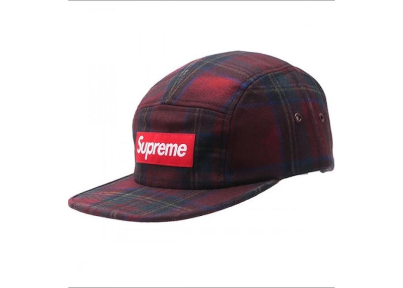 The Supreme Plaid Camp Cap Red is now available at Side Kicks!
