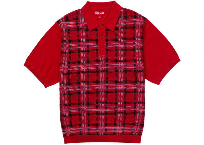 Supreme Plaid Knit S/S Polo Red