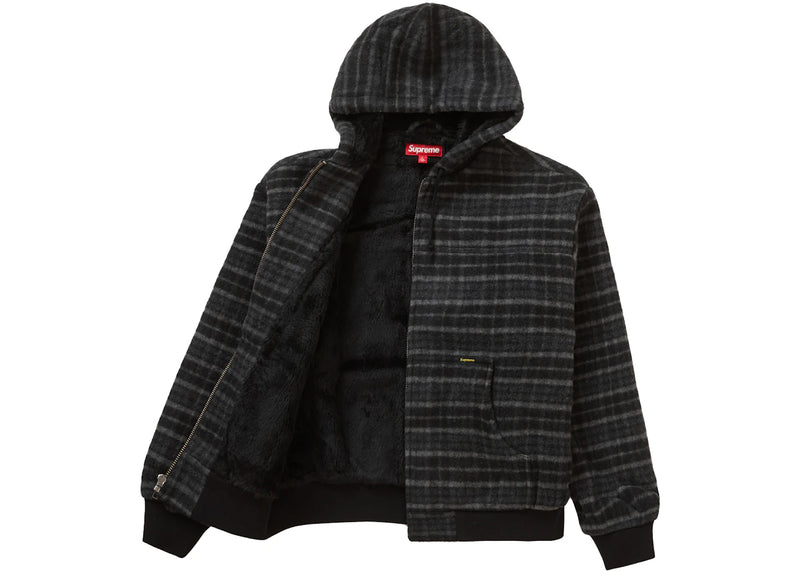 Supreme Plaid Wool Hooded Work Jacket Black