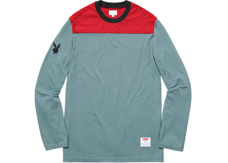 The Supreme Playboy LS Football Top Slate is now available at Side Kicks!