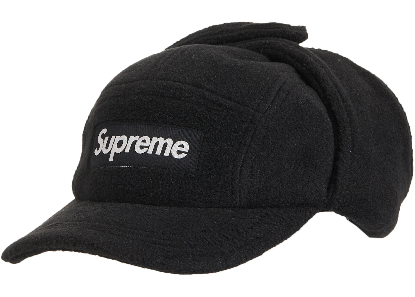 The Supreme Polartec Earflap Camp Cap Black is now available at Side Kicks!